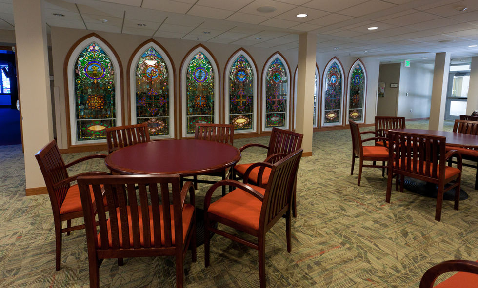 While developing the Master Plan for St. John Church, it became apparent that it was not cost effective to bring several of the existing structures up to current code standards, including a three-story classroom building and attached manse. These structures were demolished to accommodate proposed new construction. A major objective was to improve accessibility traffic flow and gathering space to accommodate social interaction before and after church services. A new covered drop off area into a large central gathering space was provided, with a coffee bar and adjacencies to a new Dining /Multi-Purpose Room and Kitchen on the main level, and new Church Offices. Areas of the existing building were remodeled to accommodate a new Nursery, Classrooms, and Restrooms. Ten historic stained glass windows were retained from the original church building and prominently displayed. Site enhancements were made which improved storm water management, site traffic flow and parking.